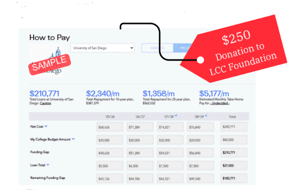 Mavs! Know your college costs BEFORE you apply! PeekWealth is making a special offer to families that donate $250 to the LCC Foundation!